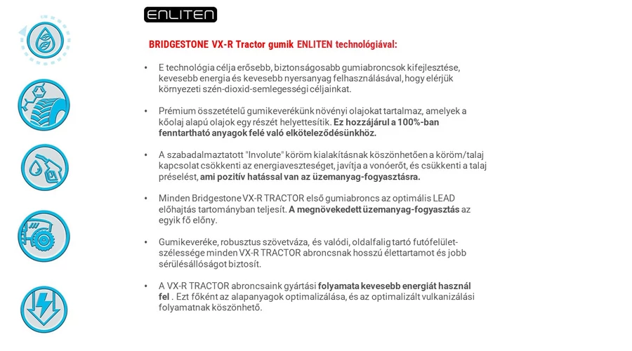Akár az úton, akár a szántóföldeken közlekedik, a VX-R TRACTOR gumiabroncs sokoldalúságot, kiemelkedő teljesítményt és megnövelt hatékonyságot biztosít, a fenntartható gazdálkodás igényeihez mérten.